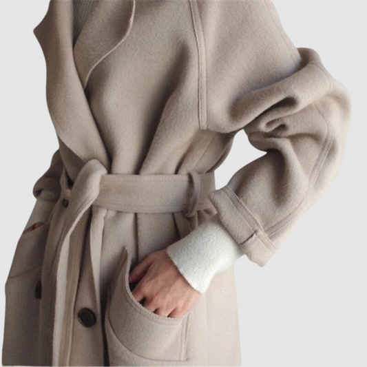 Maria – Dlouhá klasická bunda s fleecovou podšívkou a teddy límcem